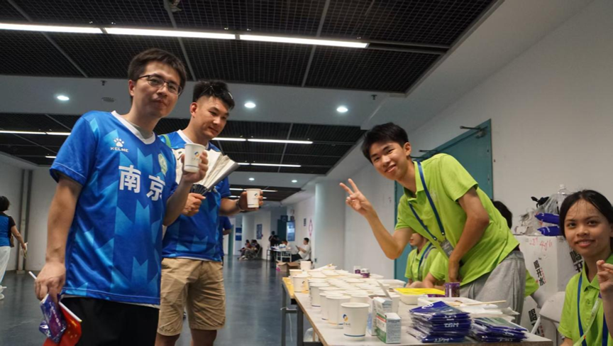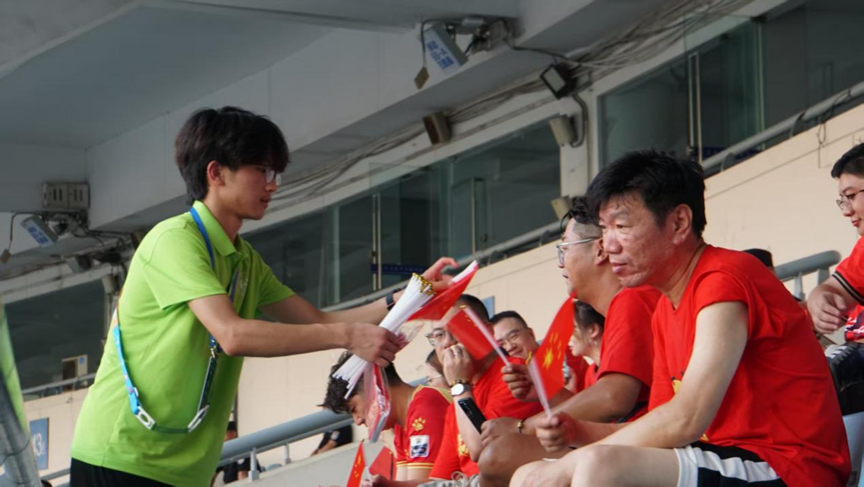 服务过程中,志愿者们高效协作,确保了物资的顺畅供应;他们以亲切的笑容迎接观众,耐心提供指引与帮助;饮水服务岗的成员及时为观众送去清凉;赛后,他们迅速清理看台,恢复场地整洁。尽管高温让汗水浸透衣背,但全体志愿者始终坚守岗位,以专业的服务和真诚的态度,生动践行了“奉献、友爱、互助、进步”的志愿精神。