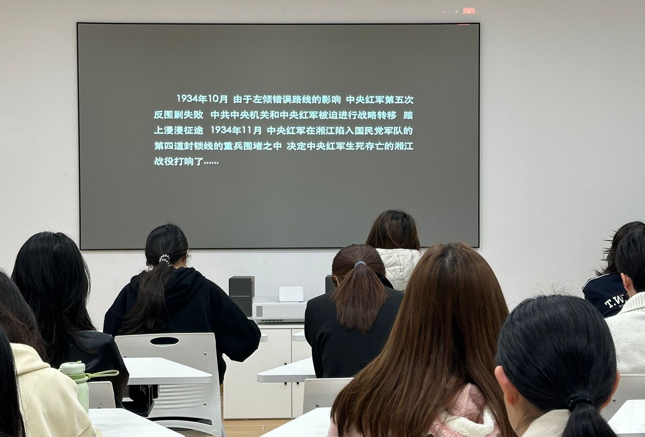 活动开始,由遵义会议精神志愿宣讲团和沂蒙精神志愿宣讲团进行影片介绍,同学们分两校区共同观看经典影片《血战湘江》与《沂蒙六姐妹》。《血战湘江》聚焦1934年红军长征最惨烈一战,以血肉之躯撕开封锁线,展现铁血信仰与生死突围。两部影片一刚烈一深情,共绘英雄儿女的热血长卷。《沂蒙六姐妹》讲述解放战争中沂蒙山区六位妇女舍家支前,抬担架、纳军鞋,以柔肩扛起家国大义,诠释军民鱼水情的永恒丰碑。