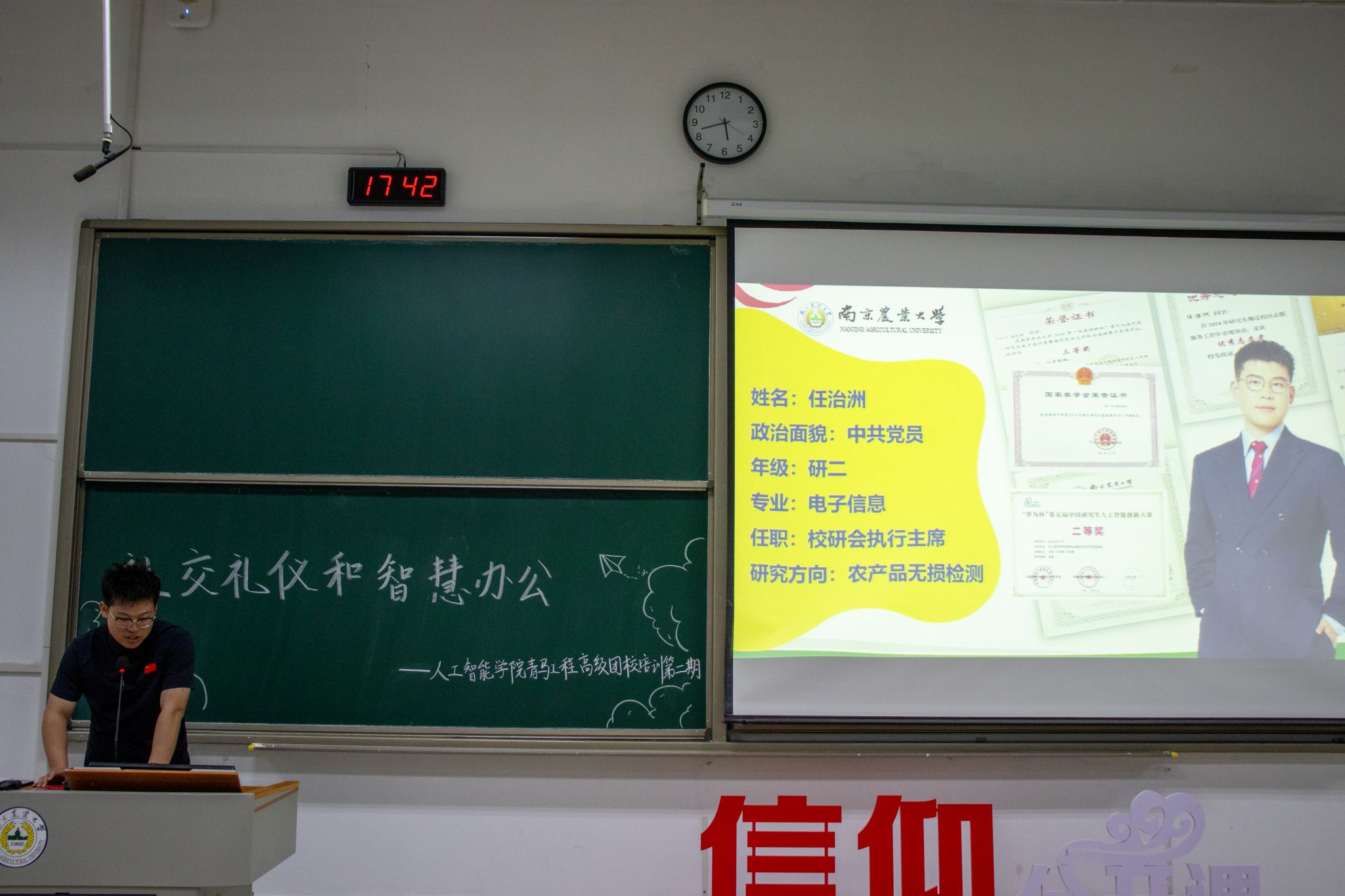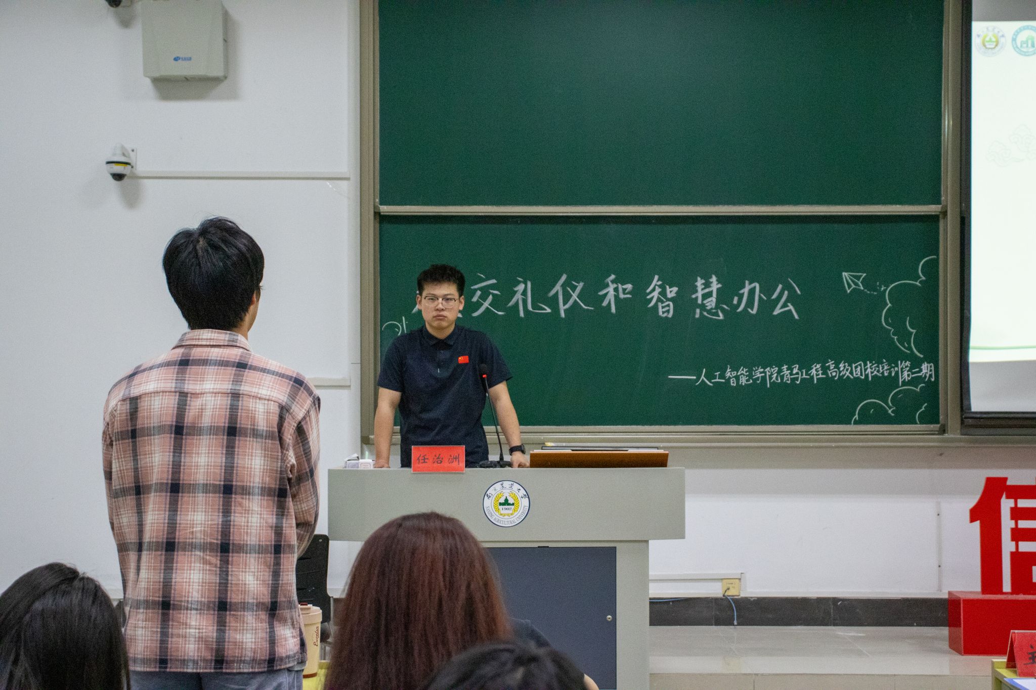 4月11日下午,人工智能学院于博远楼C301举办信仰公开课系列高级团校培训之社交礼仪和智慧办公主题讲座。学院辅导员魏宇宁、2023级电子信息专业硕士研究生任治洲担任主讲,通过“职业软实力+数字硬技术”双轨教学模式,为全院学生组织成员带来一场立体化能力提升课。