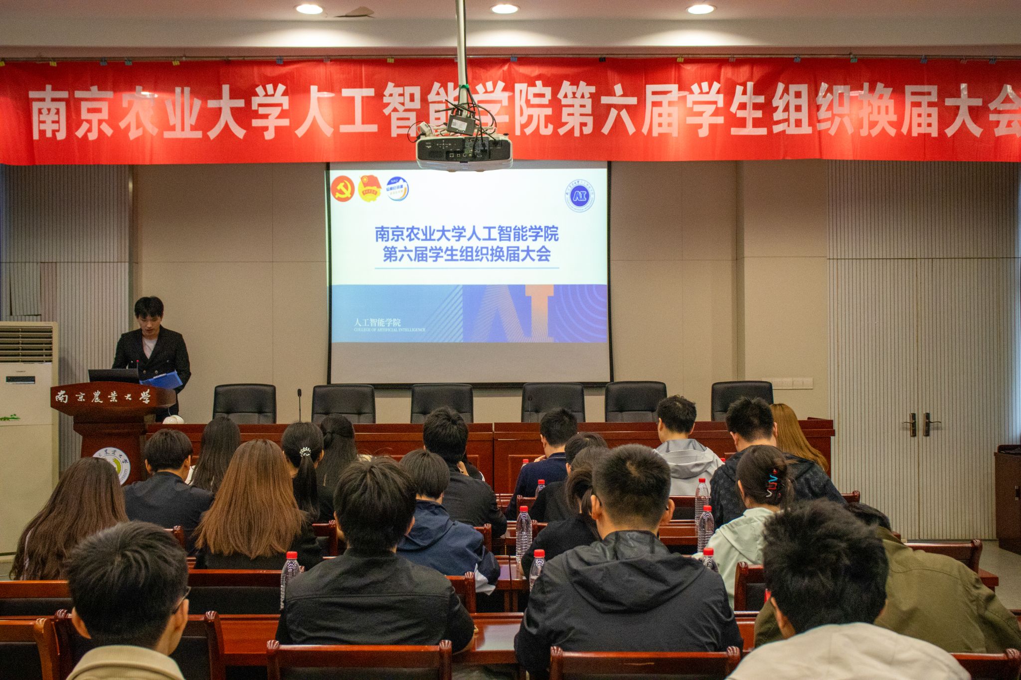 为进一步加强学生组织建设,保障工作传承有序,南京农业大学人工智能学院第六届学生组织换届大会于2025年4月22日晚在育贤楼C502会议室成功召开。人工智能学院党委副书记吕一雷,本科生辅导员魏宇宁、李洪、封筱、于佳琪、杨荣,人工智能学院第五届学生组织主席团成员、第六届学生组织主席团候选人及各班级学生代表、学生组织各部门代表共同出席了本次大会。
