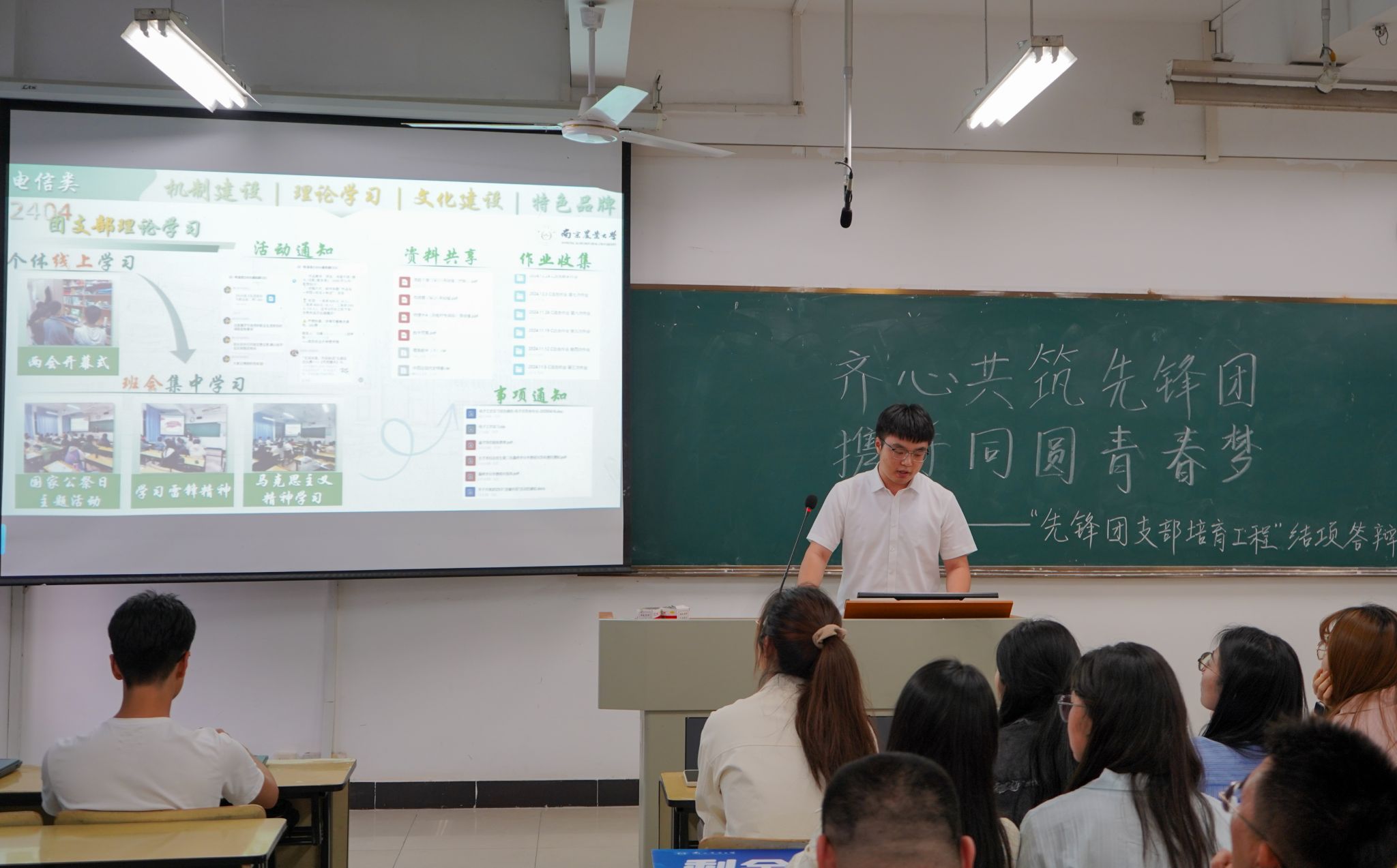 青年是时代的弄潮儿,团支部是凝聚青春力量的战斗堡垒。5月7日下午,人工智能学院第十三批“先锋团支部培育工程”结项答辩会在浦口校区汇贤楼B203报告厅举行。学院辅导员魏宇宁、封筱、于佳琪,第四届学生会执行主席阚婉宁,第五届学生团委副书记刘志亮及大一大二团支部代表等40余人出席活动,共同见证基层团组织建设的丰硕成果。