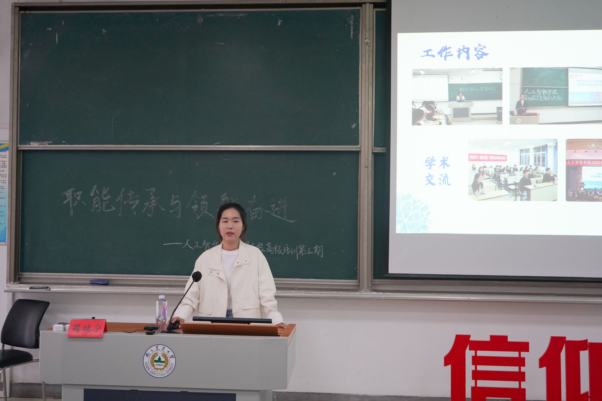 为深化学生干部队伍建设,促进组织职能传承与创新发展,人工智能学院团委监察部于5月9日在汇贤楼C102举办第三期高级团校培训。资源与环境科学学院学工办副主任聂欣,人工智能学院第五届学生会执行主席阚婉宁担任主讲人,我院一二年级学生干部百余人参与。