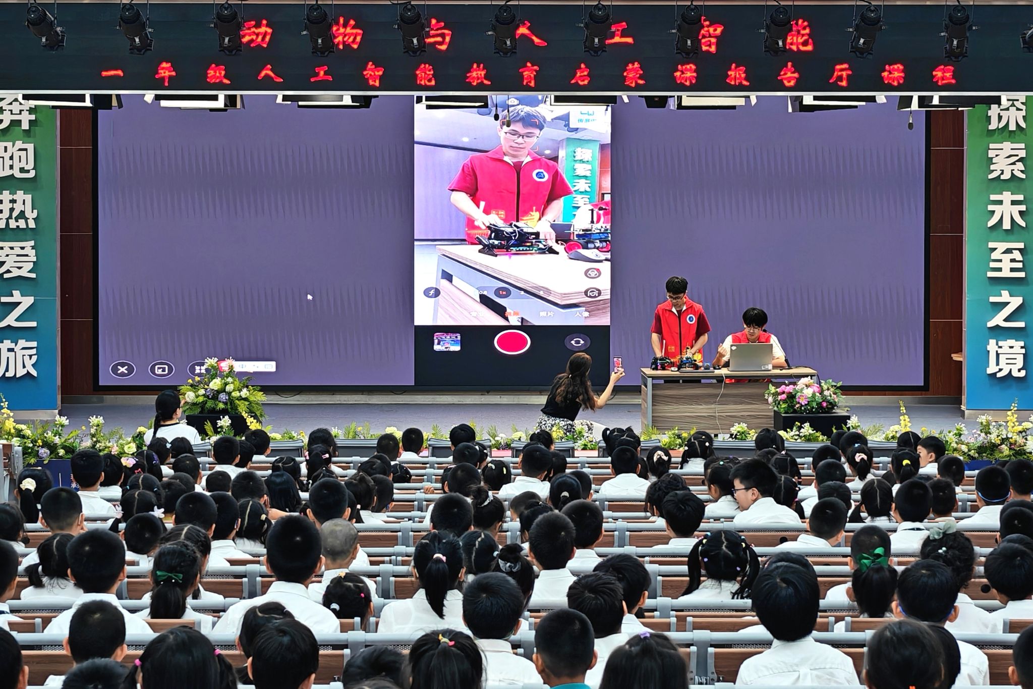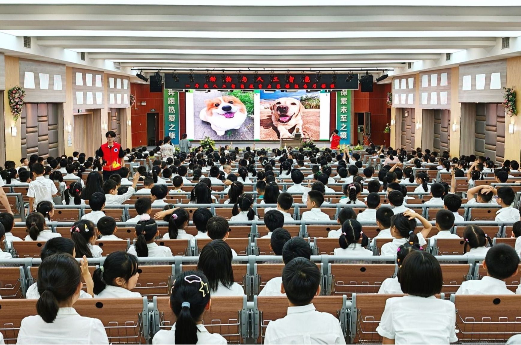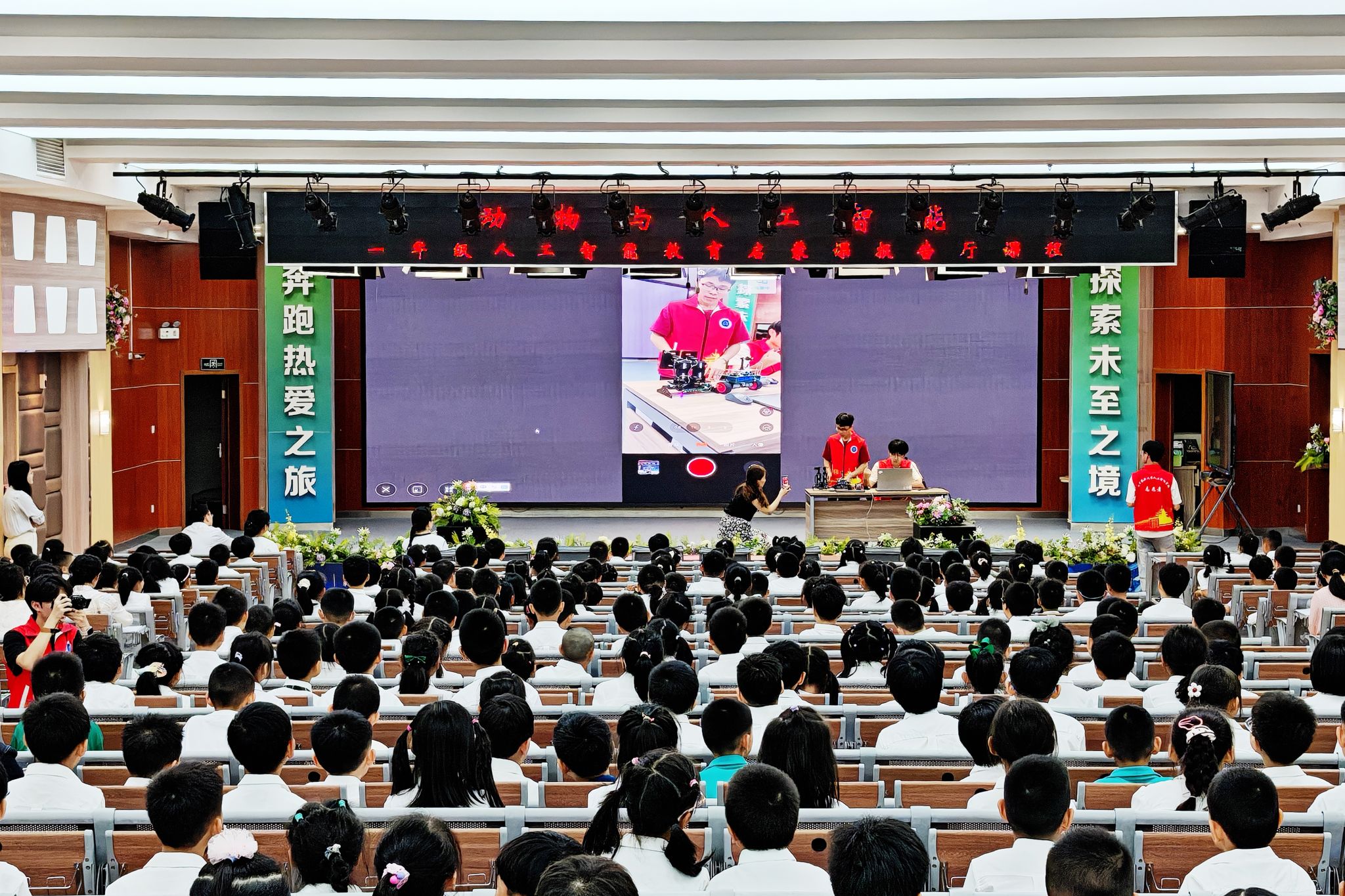 活动伊始,志愿者们化身“AI小导师”,通过趣味案例和通俗语言,深入浅出地讲解了人工智能在生活中的广泛应用,并现场展示了智能机器人。从智能语音助手到无人驾驶汽车,从图像识别到机器人技术,这些贴近生活的案例激发了小学生们浓厚的探索兴趣。