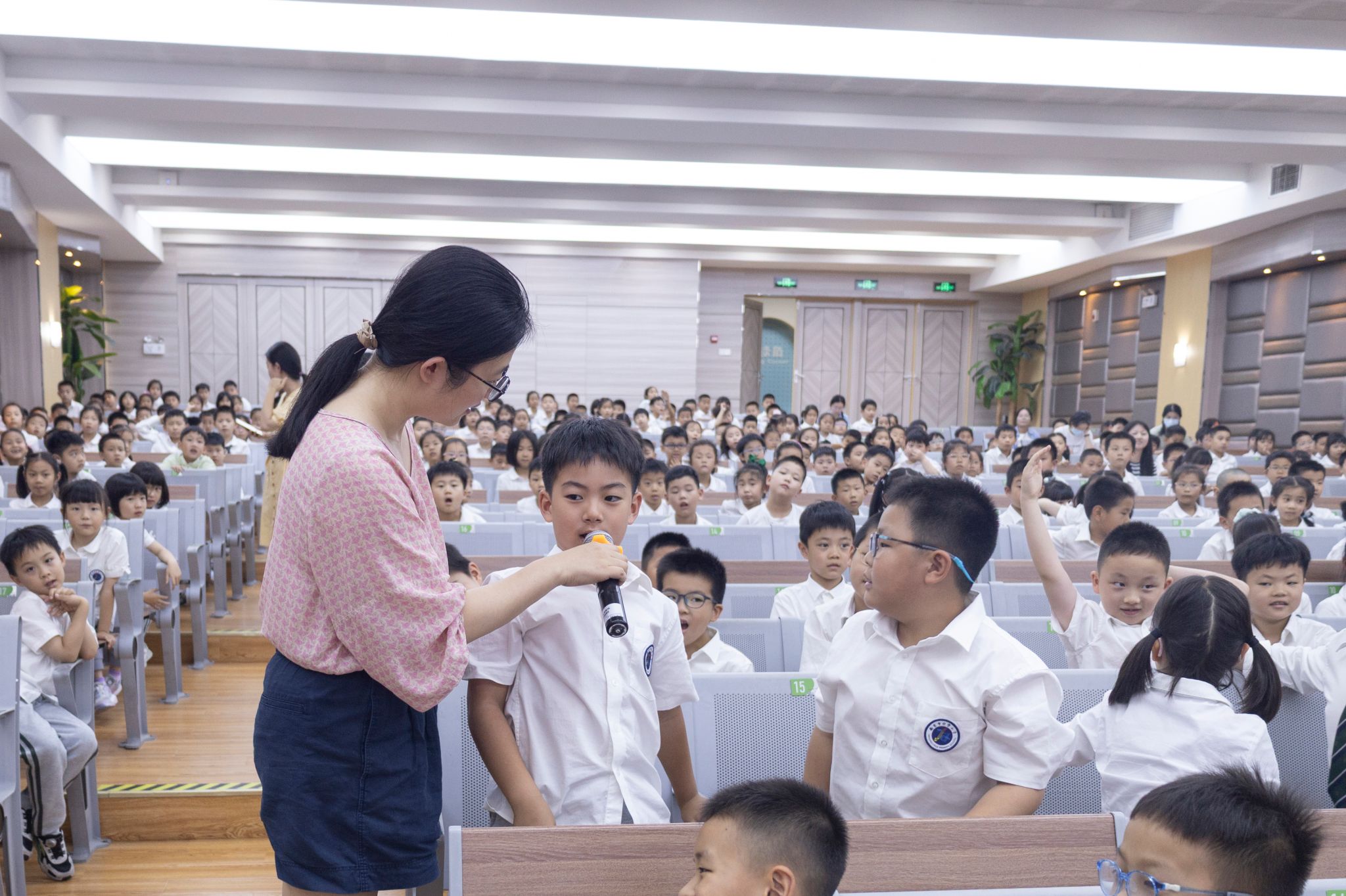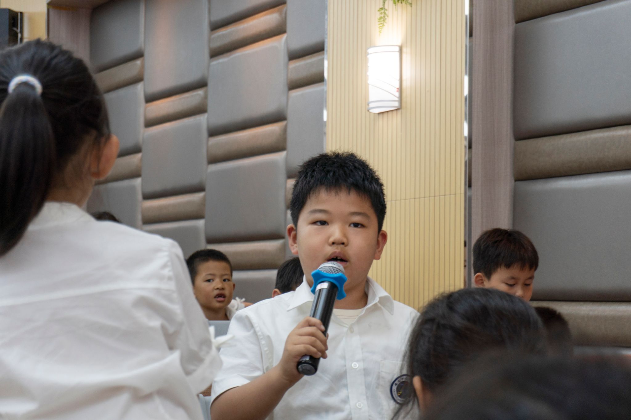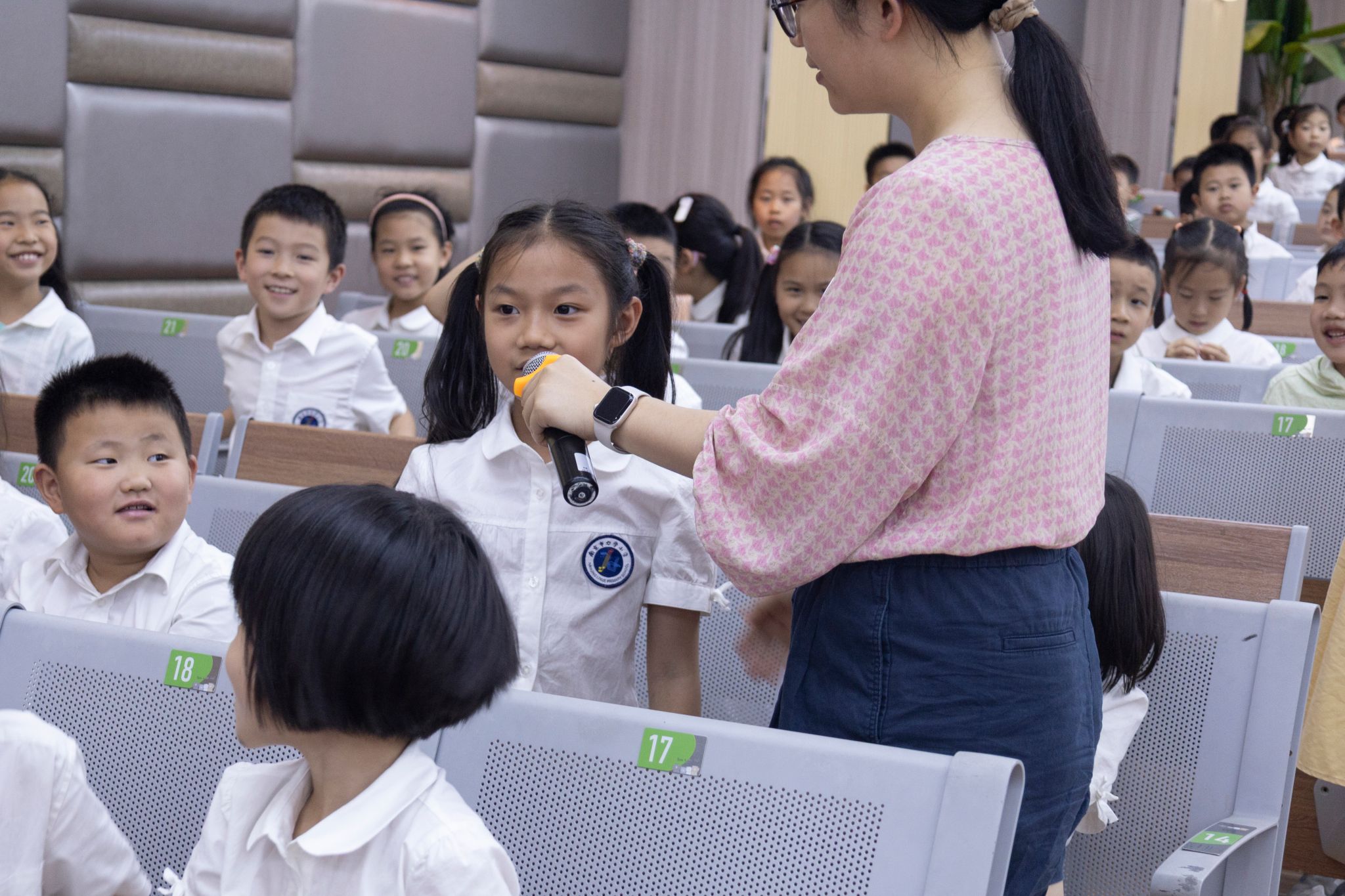 互动环节气氛热烈,小学生们踊跃提问。“人工智能为何功能强大?”、“机器人为何有的需遥控有的不需?”、“是否有猫形机器人?”等充满童趣和好奇心的问题层出不穷。刘杨耐心解答,并鼓励大家积极思考,现场互动积极活跃。