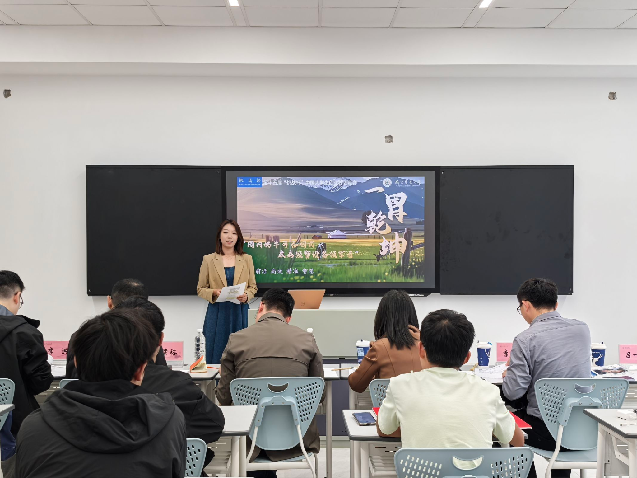 为引导和激励我院学生将科技创新与国家战略需求、经济社会发展紧密结合,着力提升创新精神、创业意识和创造能力,为科技自立自强和社会主义现代化强国建设培育新质生产力青春动能,11月2日下午,由我院AI工坊承办的第十五届“挑战杯”中国大学生创业计划竞赛院赛选拔赛在学院楼A769举行。南京农业大学教务处副处长祖海珍,科学研究院副院长葛焱,智慧农业学院(人工智能学院)党委副书记吕一雷,校团委双创实践部负责人李子成,智慧农业学院(人工智能学院)计算机系副主任翟肇裕、双创辅导员李洪受邀担任评委。