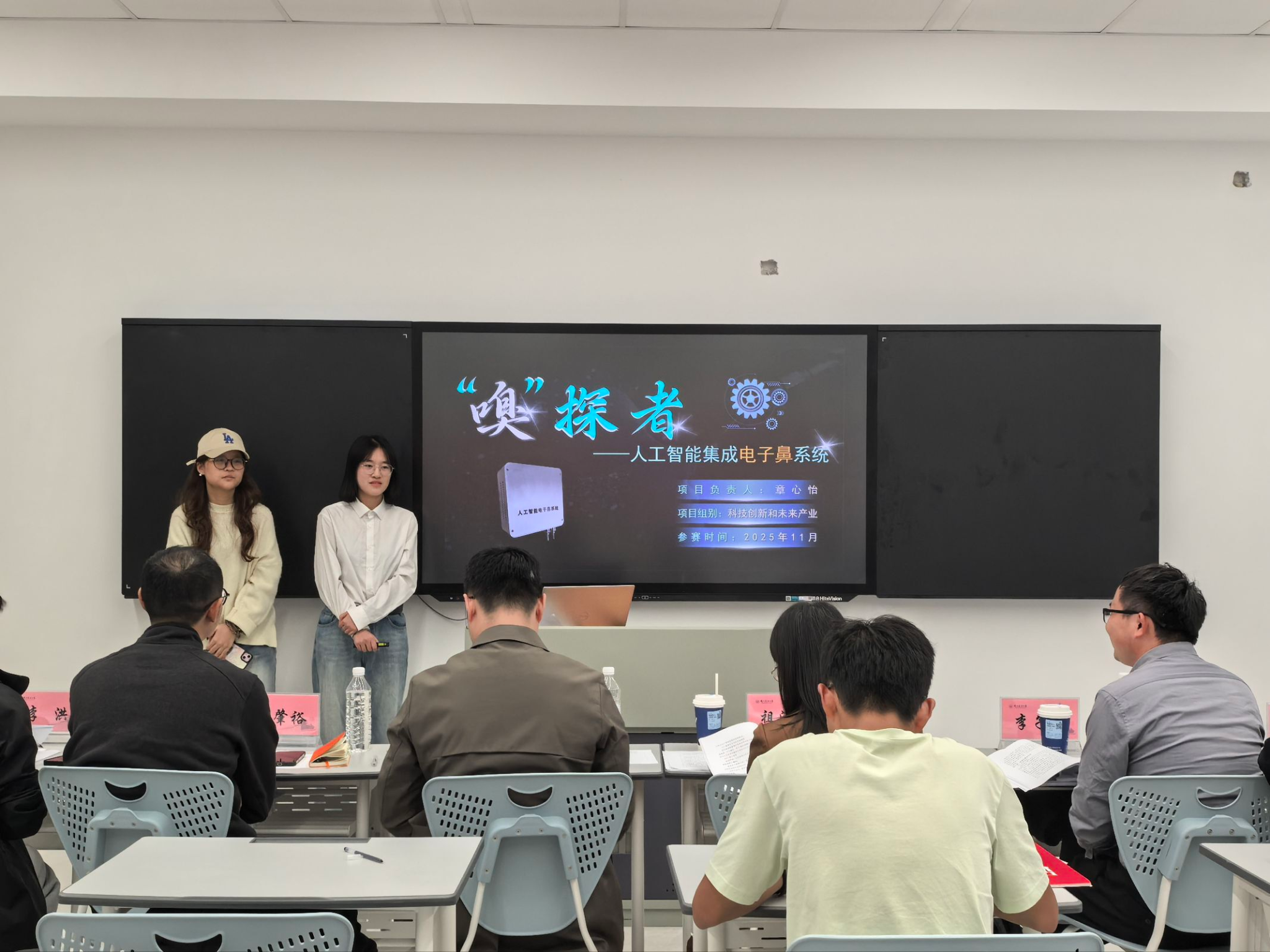在评审环节,评委老师们与选手深度互动,在肯定各项目亮点与潜力的同时,围绕选题立意、核心创新点、落地可行性等多方面进行专业点评,并针对各项目的不足提出了建设性强、实效性高的改进建议,帮助参赛选手进一步打磨和完善项目,争取在校赛中有更优异的表现。
