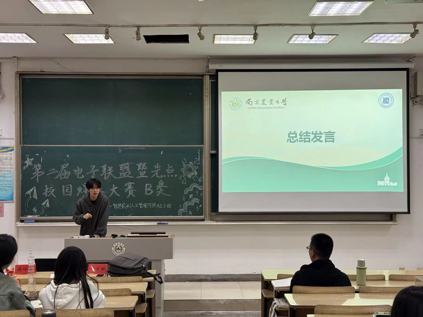 随后,周正泽、华灵枫学长对本次大赛进行了总结发言。他们结合自身参赛经历,对选手们的表现给予了高度评价,认为本届作品在技术实现和创意表达上都有了显著提升,并鼓励学弟学妹们继续保持对电子技术的热爱,在专业道路上不断探索前行。